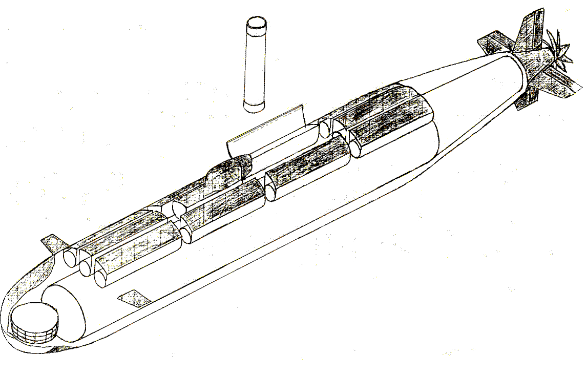 C этими всплывающими контейнерами есть ещё такая проблема: средняя плотность твердотопливных БРПЛ около 1,25, плюс масса прочного контейнера (который должен выдерживать максимальную глубину погружения лодки).