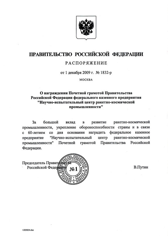 18.12.2009 в 11:00 в конференц-зале ФКП "НИЦ РКП" состоится торжественное заседание НТС с участием приглашенных гостей.