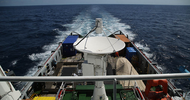 A fresh, sea-breeze view of the tracking antenna on Nos Aries, cruising toward the #IXV splashdown point #Pacific