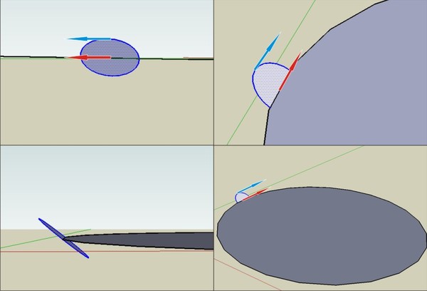 Темный круг – плоскость эклиптики. Светлый круг - пересчитанная к нему орбита старта. Красный вектор – требуемый вектор скорости для отлета к другой планете. Синий вектор – направления отлета с опорной орбиты.