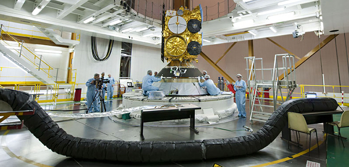 12 July 2013 On Wednesday, Alphasat was mated with its launcher adaptor in preparation for installation on the Ariane 5 rocket.
