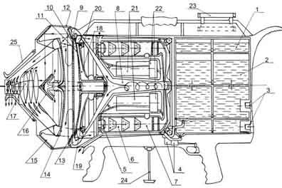 ЦитироватьВ сконструированном боевом газодинамическом лазере, названном "Поросенок", используются оригинальная конструкция соплового блока, системы принудительного воздушного охлаждения оптической системы, двойного вращающегося турбинного резонатора, что в комплексе обеспечивает сравнительно высокий КПД. Лазер обладает боезапасом в 6 выстрелов продолжительностью по 10 секунд каждый, при мощности непрерывного излучения 10 кВт. Топливом служит смесь гидразина, несиметричного диметил гидразина и дициана. В качестве окислителя используется димер двуокиси азота.