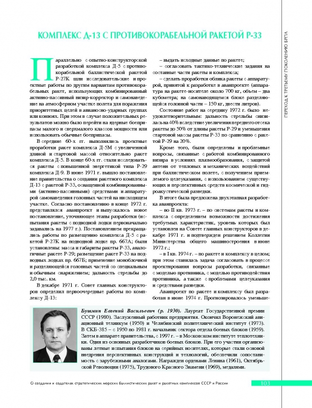 ЦитироватьПервоначальным вариантом проекта 955 предусматривалось его вооружение ракетным комплексом Д-31 разработки ГРЦ им. В.П.Макеева. Ракета стартовой массой ок. 70 тонн прорабатывалась в двух вариантах:  твердотопливном и на тиксотропном жидкостном топливе. Возникшие в процессе разработки проблемы привели к закрытию темы в середине 90-х гг.