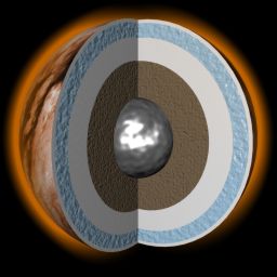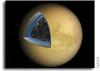 До последнего времени считалось что недра Титана дифференцированы на металическое ядро, скальные слои, затем ледяные и подповерхностный океан, покрытый ледяной корой.