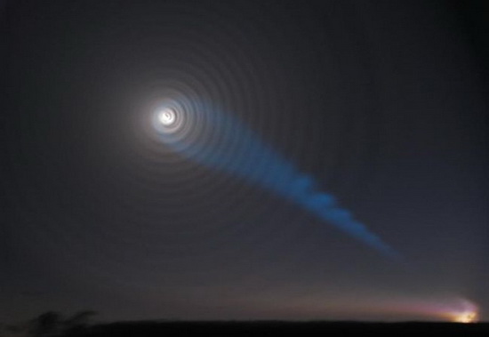 Законы оптики обычные, но это же надо условия создать, чтобы получить такой эффект. Где в природе найдешь такой источник, как спираль от выхлопа достаточно мощной ракеты?