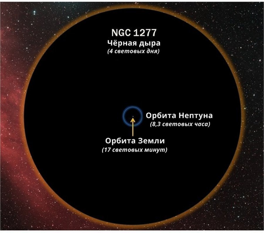 Значит в 2075 году,- через 98 лет после запуска,Вояджер-1 пролетит условно от горизонта событий,до центра Черной дыры NGC1277,диаметр которой 4 св.суток.