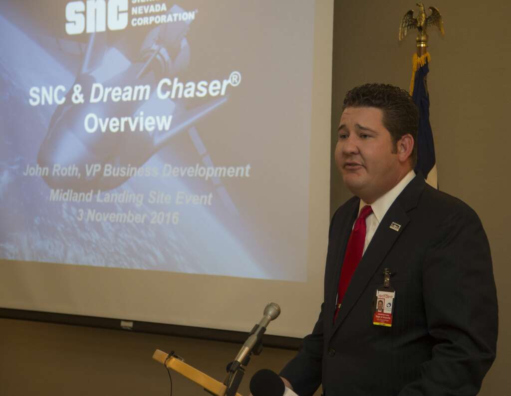 Sierra Nevada Corp. announced Thursday at Midland International Air & Space Port that the city's spaceport is a prime place to land its Dream Chaser, an in-development space utility vehicle that is contracted by NASA to deliver payloads to and fr om the International Space Station beginning in 2020.