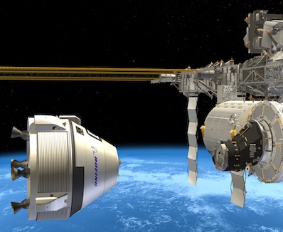 Artist's concept of the CST-100 spacecraft approaching the International Space Station. Credit: Boeing