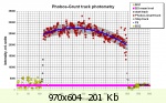 Анализ трека показывает, что не смотря на довольно высокий SNR трека по отношению к фону (SNR=300), качество фотографии (JPEG-компрессия, дефокус изображения, аппаратные шумы) не позволяет выявить вариации блеска АМС, которые бы превышали шумовой порог (серый "забор" вдоль дуги трека на участке "Phobos-Grunt track"):