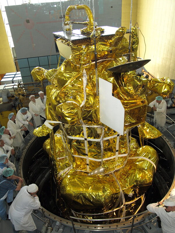 Завершается подключение наземной  кабельной сети, установка элементов экранно-вакуумной теплоизоляции,  датчиков теплового потока, системы контроля вакуума. В ближайшее время  запланирована окончательная стыковка составных частей КА «Фобос-Грунт» и  установка в вакуумную камеру.