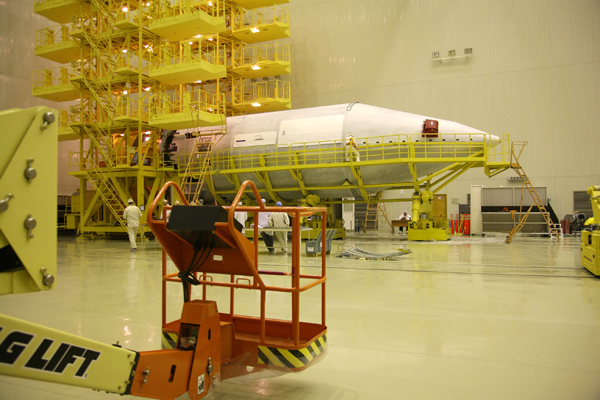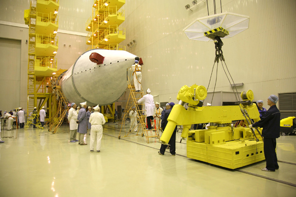 Вчера  в МИКе в чистовом зале 111 начались работы по сборке ракеты космического назначения. Специалисты Космического Центра имени М.В.Хруничева и  Коcмического центра "Южный» провели механическую стыковку космической головной части с ракетой – носителем. Сейчас выполняются проверки электрических соединений.