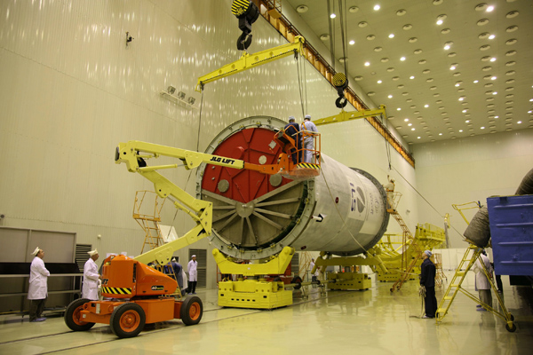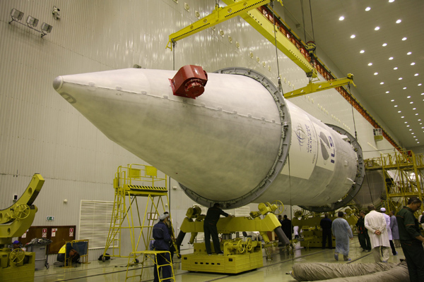 До конца текущей недели планируется провести общую сборку ракеты космического назначения: т.е. сборку космической головной части с ракетой-носителем «Протон».