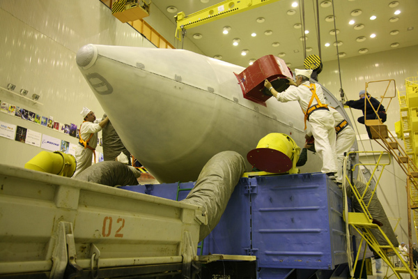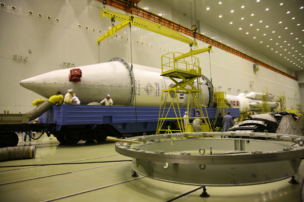 Специалисты Космического Центра имени М.В.Хруничева и  французского подразделения концерна EADS Astrium установили космический аппарат на разгонный блок «Бриз-М», затем космический аппарат закрыли створками головного обтекателя. Сейчас проводятся заключительные операции на КГЧ.