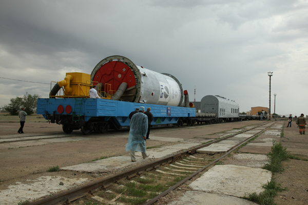 Ракета–носитель «Протон», предназначенная для запуска арабского спутника,  была доставлена из Космического Центра имени М.В.Хруничева на космодром железнодорожным транспортом. В эти  дни ожидается прибытие на Байконур разгонного блока «Бриз-М».