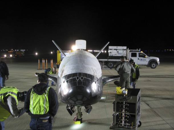 unmanned spaceplane shortly after landing Friday Dec. 3, 2010 at Vandenberg Air Force Base, Calif.
