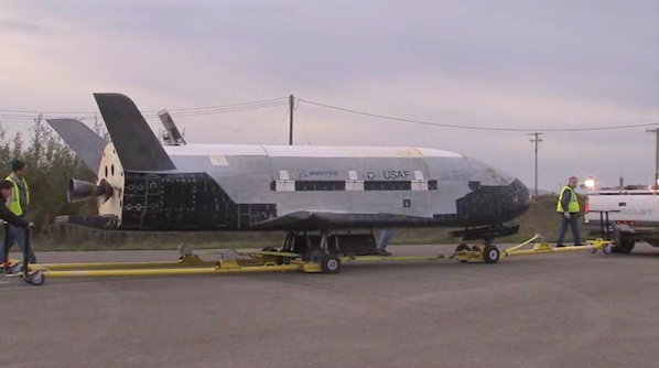 Эээ, т.е. X-37B болтается около МКС (захватывется манипулятором за что-то?), а груз загружается через открытый космос?