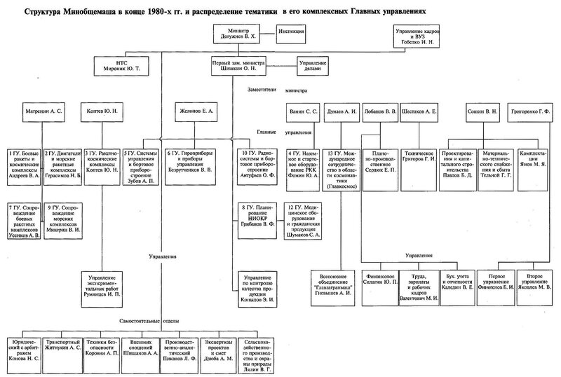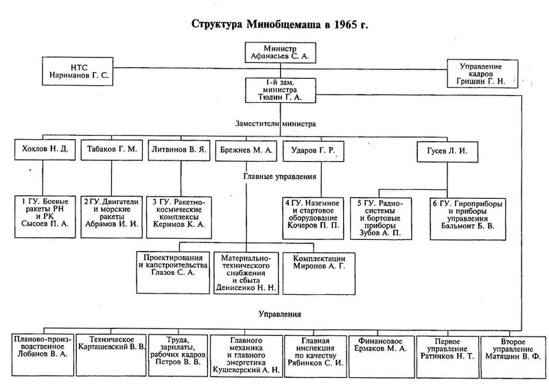 Министерство также обеспечивало создание орбитальных станций, в том числе станции Мир. Под его руководством находились КБ таких выдающихся конструкторов, как Бармин Владимир Павлович, Глушко Валентин Петрович, Семёнов Юрий Павлович. Он также работал с Сергеем Павтовичем Королёвым.