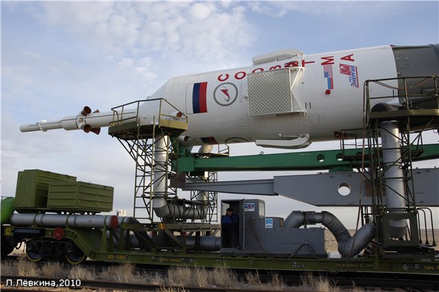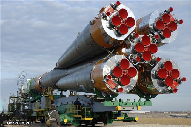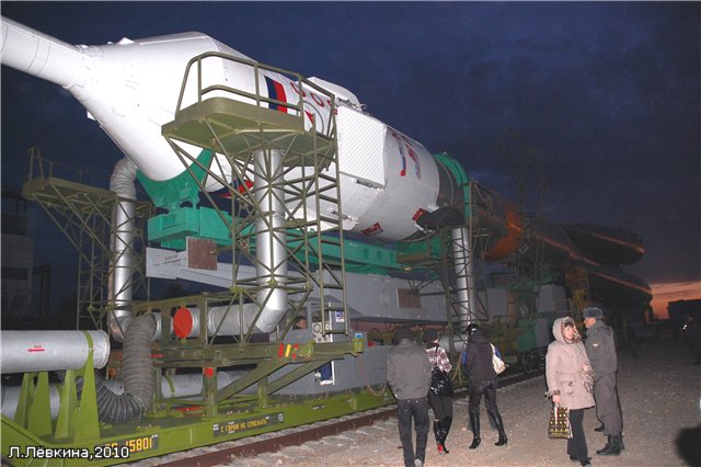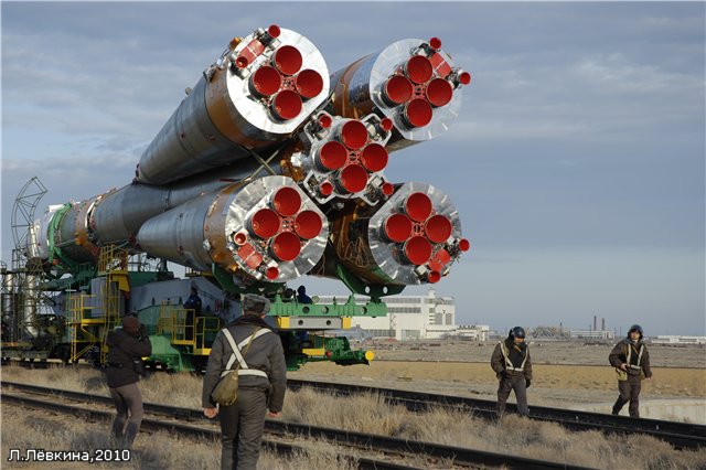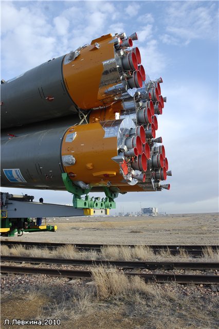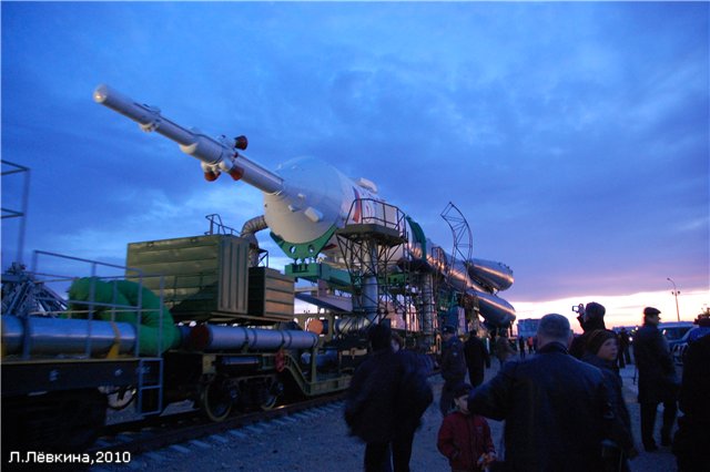 Еще немного холодного ветра и нехитрых железнодорожных манёвров - и ракета снова едет к старту задом наперёд, подталкиваемая тепловозом. Прямо перед нашими глазами! Народ, узнав знакомую ракету, обрадовался и стал фотографироваться на её фоне. Какая же она красивая! До встречи на старте!