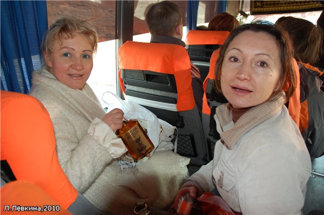Настало время питерской Елене удивить нас во второй раз (в первый раз она удивила тем, что оказалась однокурсницей Андрея Борисенко, которую он очень радушно встретил). А заодно и подлечить. Не успели мы вскочить в салон, как Елена зазвенела металлическими стаканчиками с надписью «Космодром «Плесецк» Мирный». В руках её мелькнул сосуд с коварной надписью «Гептил»... Крепкий однако! У Михаила даже волосы встали дыбом и обволокли голову шарообразным дымчатым нимбом. Зато после этого его уже не проняла простуда. Как и всех нас, даже датчан. Спасибо Елене, что прошлой весной, будучи в Плесецке, она заботливо собрала в бутылку всё то, что не влезло в ракету, и не поленилась привезти трофей сюда, чтобы поддержать наше здоровье!