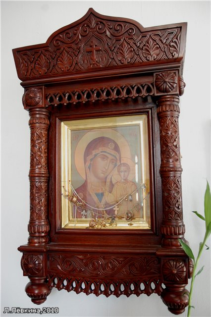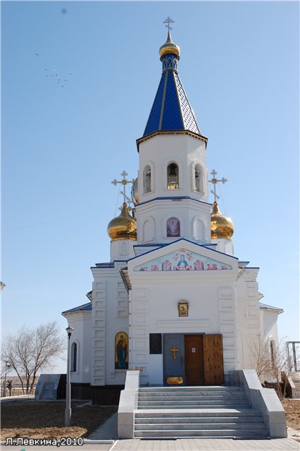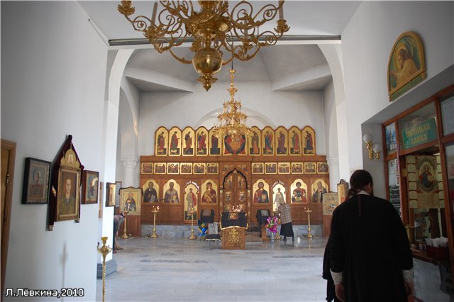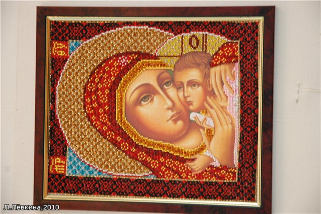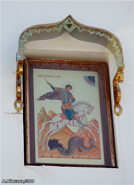 Нашей следующей остановкой стал небольшой белоснежный храм святого великомученика Георгия Победоносца с золотыми луковичными куполами, в котором имеется необычная Казанская икона Божией Матери: эта икона побывала в космосе. Рядом с ней на стене храма висит в рамочке сертификат, подтверждающий, что в ознаменование 60-летия Победы в Великой Отечественной войне 1941-1945 гг. икона находилась в космическом полёте на Международной космической станции с 16 по 24 октября 2004 года.
