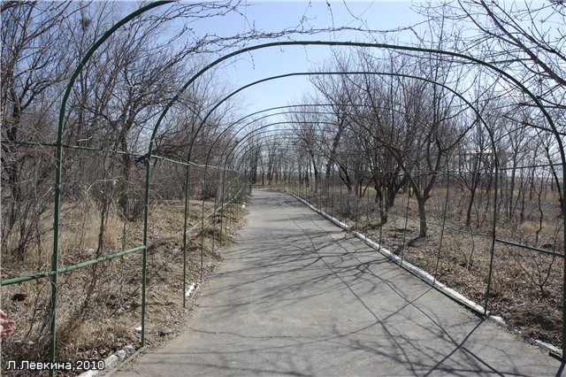 Входы в гостиничные домики укрывались летом вместе с лавочками от беспощадного жгучего байконурского солнца естественными зелёными «тентами» - сплошными живыми зелёными арками, сотканными вьюнами, облепляющими металлические каркасы. Живительная тень спасала от жары и радовала глаз.