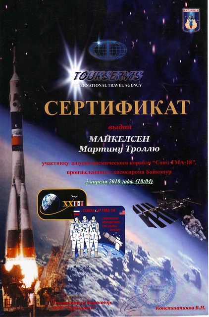 "участник запуска космического корабля" - это вам не просто турист!.. :)