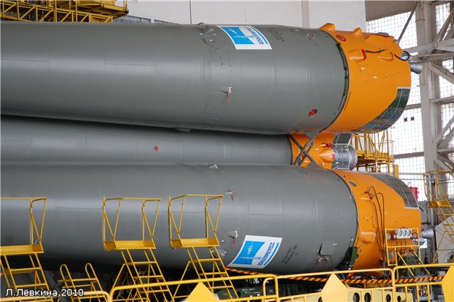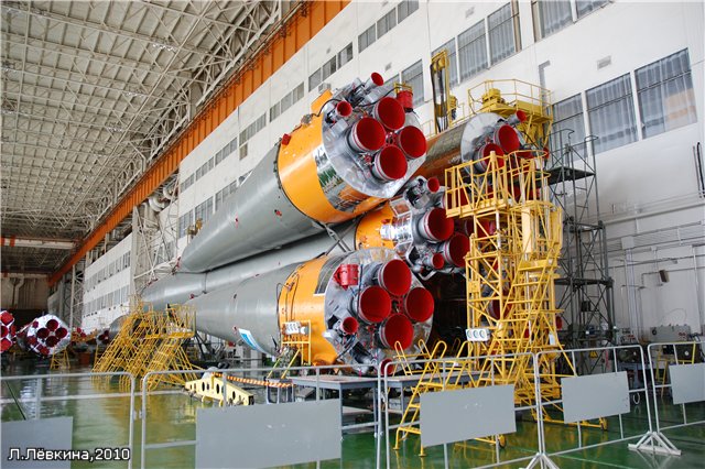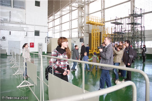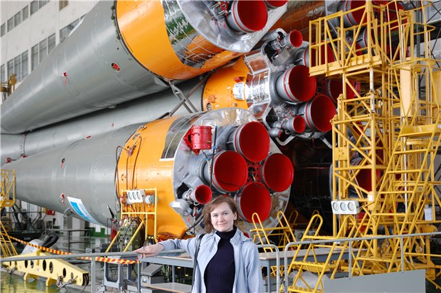 А после обеда нам не пришлось даже выходить из здания: пройдя через коридор и пропускной пункт, мы оказались в том самом месте, где ещё совсем недавно ожидала рассвета наша ракета – в шумном монтажно-испытательном корпусе. Здесь нас встретил представитель ЦСКБ «Прогресс», прилетевший из Самары. Встретил, чтобы провести интересную экскурсию по МИКу, ответить на вопросы, присмотреть, чтобы мы не снимали внутри панораму, а после убедиться, что все мы вышли наружу.