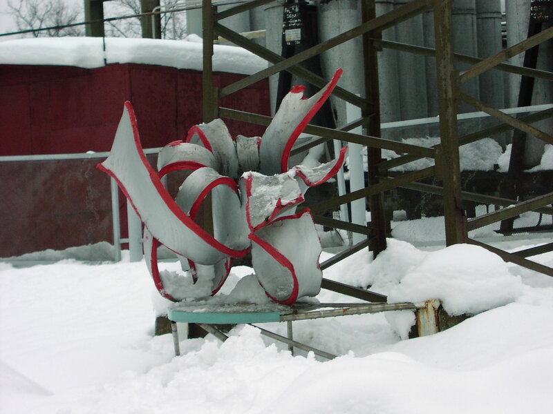 Фото из музея в Пересвете. При испытаниях ОДУ ОС Мир в этом баллоне было горючее (стендовая часть установки). Потом с ним что-то случилось. Получился такой красивый "тюльпан". И температура при этом выросла...