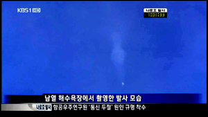 Вы уж, сторонники "корейского следа" объясните откуда по вашей версии взялся дымный след тянущийся за ракетой между первой и второй вспышками? Я то думаю это горит двигатель, а вы?