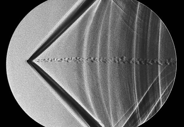 На картинке можно рассмотреть положение волн рядом летящих предметов, но наверно должно быть отличие, когда один предмет движется, а другой (поверхность) покоится относительно воздушного потока.