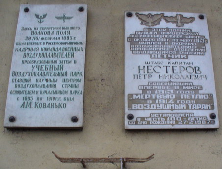 В Санкт-Петербурге с главного здания бывшей Офицерской воздухоплавательной школы исчезли памятные доски, одна из которых посвящена Георгиевскому кавалеру, выдающемуся русскому летчику Петру Николаевичу Нестерову.