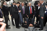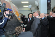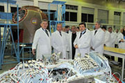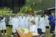 Президент Корпорации, генеральный конструктор В.А. Лопота и первый вице-президент Корпорации, первый заместитель генерального конструктора Н.И. Зеленщиков показали А.Ю. Воробьёву и сопровождающим лицам основное производство предприятия. В сборочном цехе по изделиям пилотируемой тематики были представлены работы по транспортным космическим кораблям "Союз" и "Прогресс", а в контрольно-испытательном центре - по завершающей сборке и заводским контрольным испытаниям ракетно-космической техники, создаваемой Корпорацией.