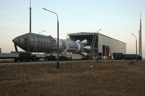 Сегодня вечером на космодроме Байконур прошли заседания технических руководителей и Государственной комиссии, на которых рассматривались вопросы готовности космодрома к вывозу ракеты «Протон» со спутником «МСВ-1» (MSV1, SkyTerra 1) из монтажного корпуса на стартовый комплекс.