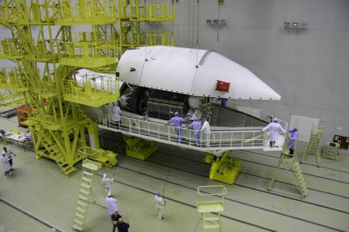 Сегодня специалисты предприятий ракетно-космической отрасли России проводят заключительные операции по подготовке РКН к вывозу на стартовый комплекс.