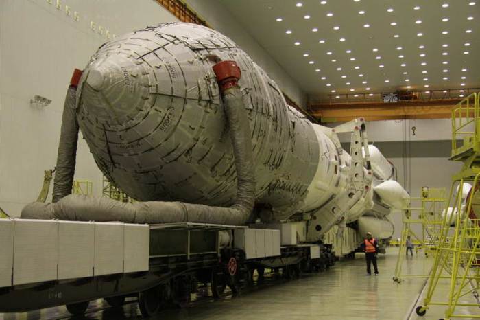 Сначала  на головной обтекатель ракеты будет одет специальный термочехол, после чего собранную РКН переложат на транспортно-установочный агрегат, предназначенный для перевозки собранной ракеты на стартовый комплекс и ее установки в пусковую систему.