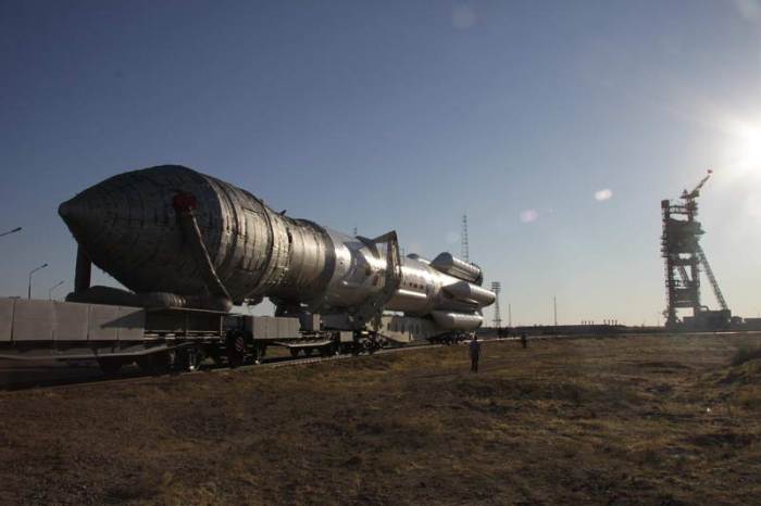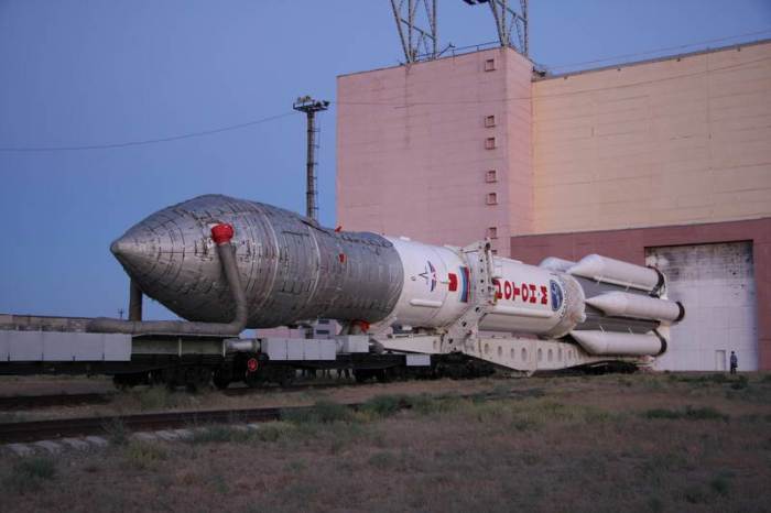 На космодроме Байконур продолжается подготовка к пуску ракеты космического назначения «Протон-М» с разгонным блоком «ДМ-2» и блоком из трех российских навигационных космических аппаратов «Глонасс-М».
