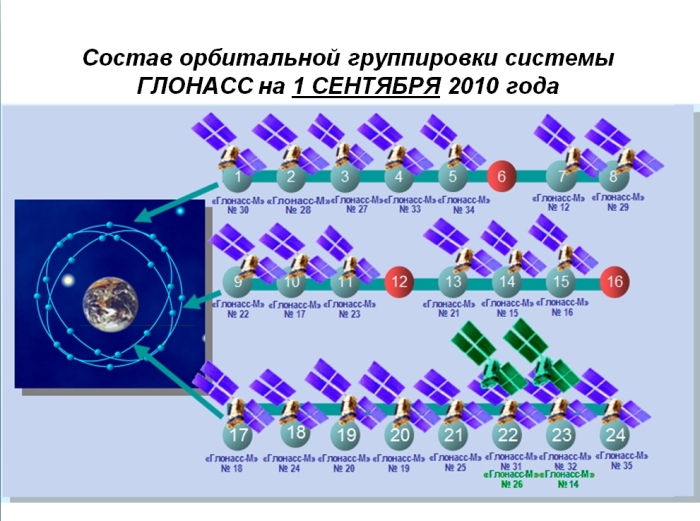 По состоянию на 2 сентября действующая орбитальная группировка ГЛОНАСС состоит из 21 космического аппарата. Ещё часть КА находятся в орбитальном резерве, и часть – на этапе ввода. Запущенные сегодня три космических аппарата «Глонасс-М» выведены во вторую орбитальную плоскость. В 8:26 мск разгонный блок «ДМ-2» штатно отделился от блока космических аппаратов, выведя их на целевую орбиту, а к 9:08 мск все три КА были взяты на управление. Планируется, что они будут введены в группировку к 17 октября. Полное развертывание отечественной навигационной системы и глобальное покрытие навигационными сигналом всего Земного шара будет достигнуто в результате кластерного запуска РН Протон М с тремя КА Глонасс-М  в конце ноября 2010 года.