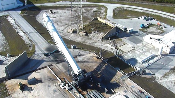 ЦитироватьFalcon 9 rocket moves to launch pad[/size]