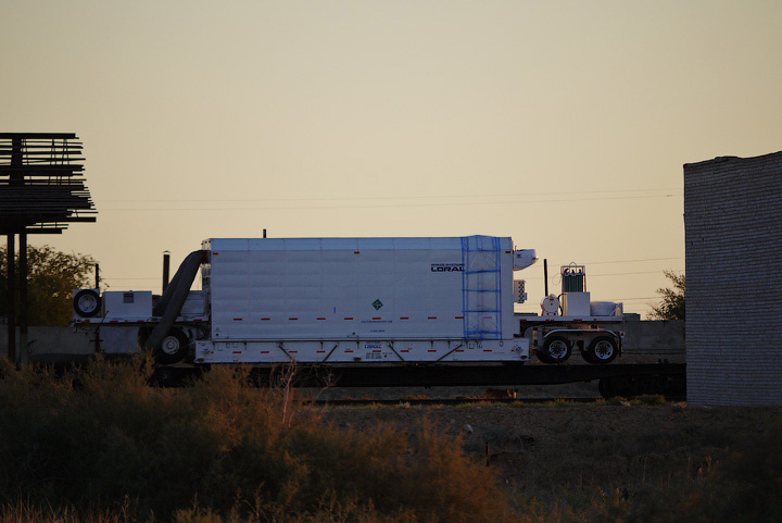 Сегодня на космодроме проводится перевозка разгонного блока  «Бриз-М» из монтажно-испытательного корпуса площадки 92А-50 на заправочную станцию площадки 31, где будет проводиться заправка компонентами топлива баков высокого давления разгонного блока.