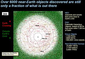 Кормление гуглю слов типа "near earth object" вываливает тучу ссылок. Самые простенькие - на Вики: http://en.wikipedia.org/wiki/Near-Earth_object и на страничку JPL: http://neo.jpl.nasa.gov/