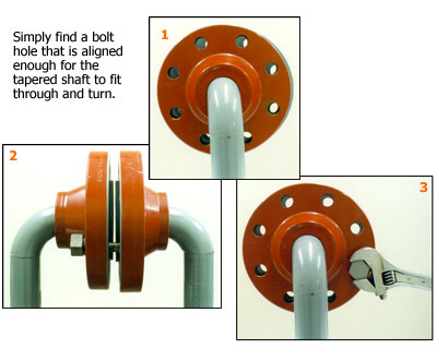 То есть два кольца с отверстиями на концах труб. В отверстия ставятся болты и затягиваются. Получается прочное соединение, и в космосе легко можно разобрать с помощью гаечного ключа.