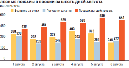 В четверг спутниковые данные показывали, что на территории РФ действуют 535 пожаров, в пятницу их количество уменьшилось до 376. В субботу спутники зафиксировали 564 очага возгорания.[/size]