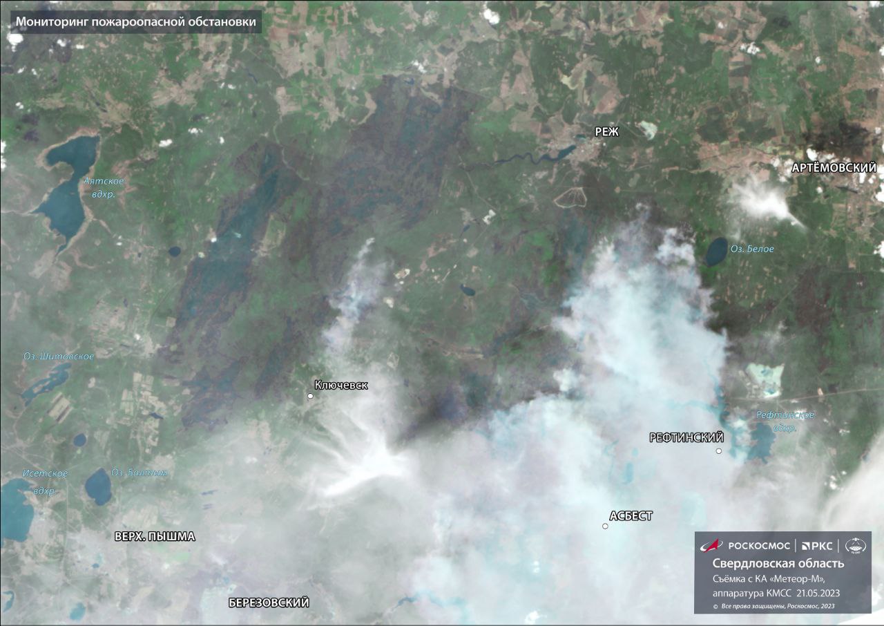 Выжженная земля и клубы дыма - так выглядит один из районов Свердловской области на снимке, опубликованном "Роскосмосом". На вчерашний день в регионе огонь бушевал на территории в 77 тысяч гектаров, сгорело более 300 жилых домов и почти 4 тысячи построек, в числе которых могут быть и садовые домики, где с началом весеннего сезона обитают пожилые люди.