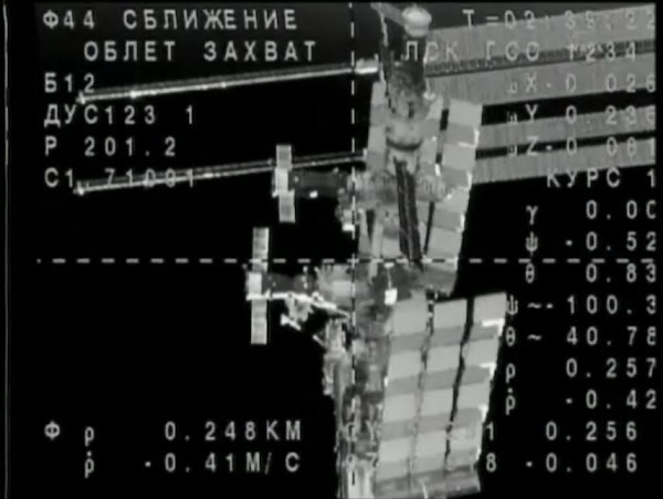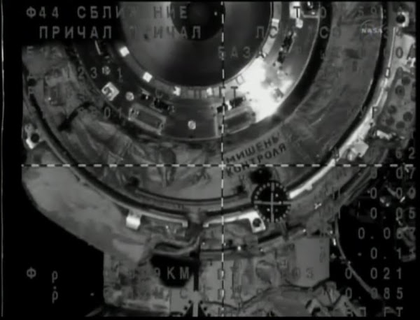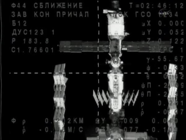 «Союз» причалил к стыковочному узлу российского исследовательского модуля «Поиск» в 04 часа 01 минуту (00:01 GMT).  Стыковка прошла в автоматическом режиме под управлением ЦУП.