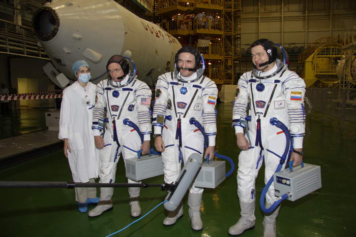 На космодроме Байконур начался заключительный этап подготовки основного (Александр Калери, Олег Скрипочка, Скотт Келли) и дублирующего (Сергей Волков, Олег Кононенко, Рональд Гаран) экипажей транспортного пилотируемого корабля Союз ТМА-М к полету на Международную космическую станцию.