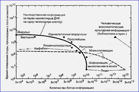 Механизм накопления информации в ДНК ну явно достиг насыщения... Но задолго до этого начал развиваться механизм накопления информации в нервных сетях. Он быстро обогнал механизмы ДНК. Но и он вроде начал загибаться (шкалы ведь логарифмические). Отдельный человек вряд ли умней близких ему животных. Сила, прорыв человека – в социальных связях.  Жаров и говорит: отдельный человек не есть носитель разума. Социум. Вот новое более просторное, чем ДНК и нервная система вместилище битов, которое сейчас все еще бурно эволюционирует и далеко от насыщения пока.