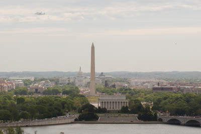 First up with a pass by the Dulles International Airport and Discovery's future home in the Smithsonian annex, then the piggybacking shuttle headed for the nation's capital to make a couple of loops around the sites and landmarks of Washington, D.C. before returning to Dulles for a tire-smoking touchdown at 11:05 a.m. EDT.