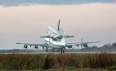 К последнему "месту прописки" шаттл доставит специально модифицированный по заказу американского космического ведомства "Боинг-747". Примечательно, что это тот же самолет, который использовался для доставки "Дискавери" на космодром во Флориде для его первого полета в космос 30 августа 1984 года. В минувшее воскресенье специалисты завершили монтаж шаттла на корпусе самолета, а в понедельник была проведена последняя проверка готовности уникальной "двухэтажной конструкции" к полету.