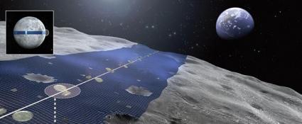 The Luna Ring: Electric power generated by a belt of solar cells around the lunar equator would be transmitted and beamed to the Earth from the near side of the Moon. Image credit: Shimizu Corporation.