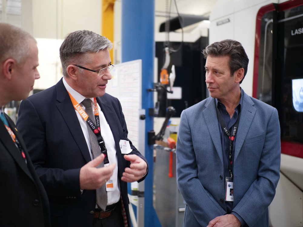 Virgin Orbit president and CEO Dan Hart (right) leads GomSpace CEO Niels Buus on a tour in Long Beach. Credit: Virgin Orbit